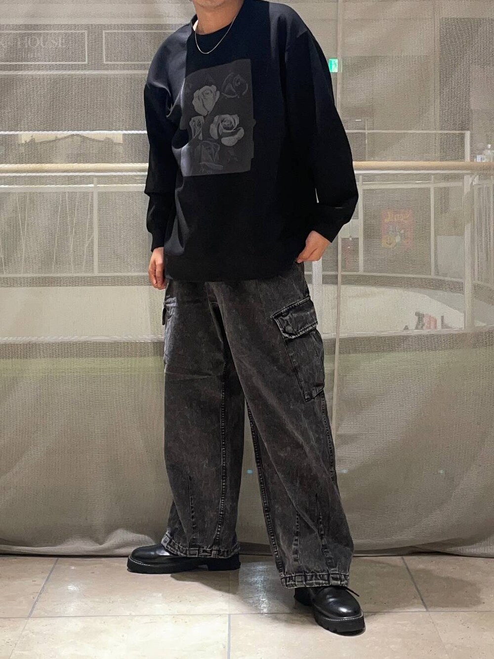 たかしのデニムパンツ「DENIM CARGO PANTS / デニムミリタリーカーゴパンツ/パラシュートパンツ」を使ったコーディネート