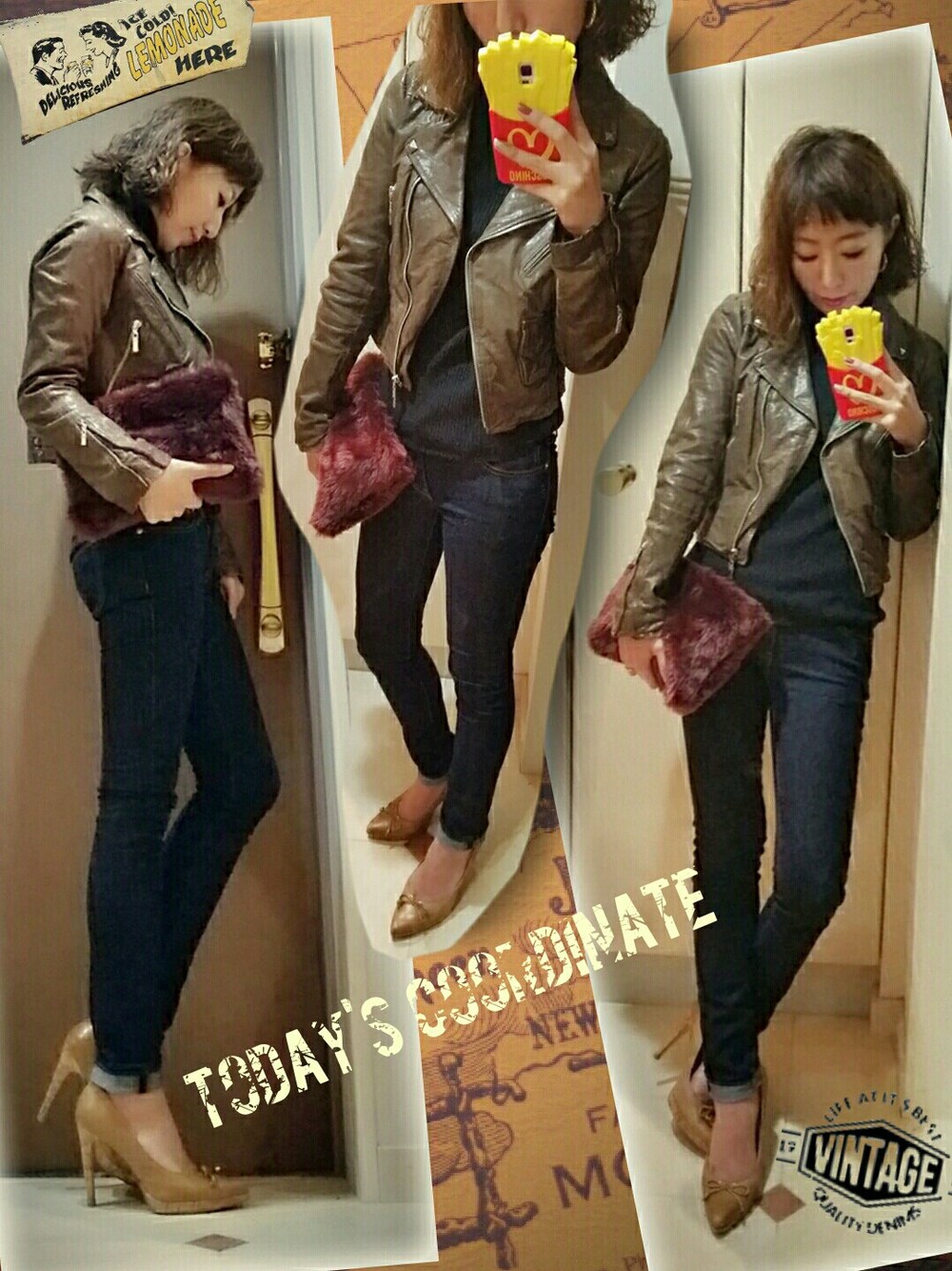 こんにちは✨ 今日のコーデです👖✨ 今日はハードなレザージャケットにスキニーデニムなので、ファークラッチとリボン付のパンプスで女性らしい要素も取り入れました☺ 今日も又コレクションに選んで頂きましてありがとうございますm(_ _)m❤ 今日は目覚ましにも気付かず起きたら11時15分でした😨💧 旦那はご飯で起こすまで絶対に起きないので1時まで寝てました😥 明日から4日間は旦那が仕事なので次は木曜日と金曜日にコーデを載せますが、又晩にでも過去コーデ(前に出来るだけ載せてないもので)コラージュで載せます(^-^)✨