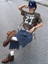 迷彩とTimberの色の相性もストリートも感も出せてそこで合わせてるのと、チェックショーツの紺色とキャップで色合わせして、ガラガラしてるコーデだけど上下で色を合わせてまとまりのあるコーデにしてます!