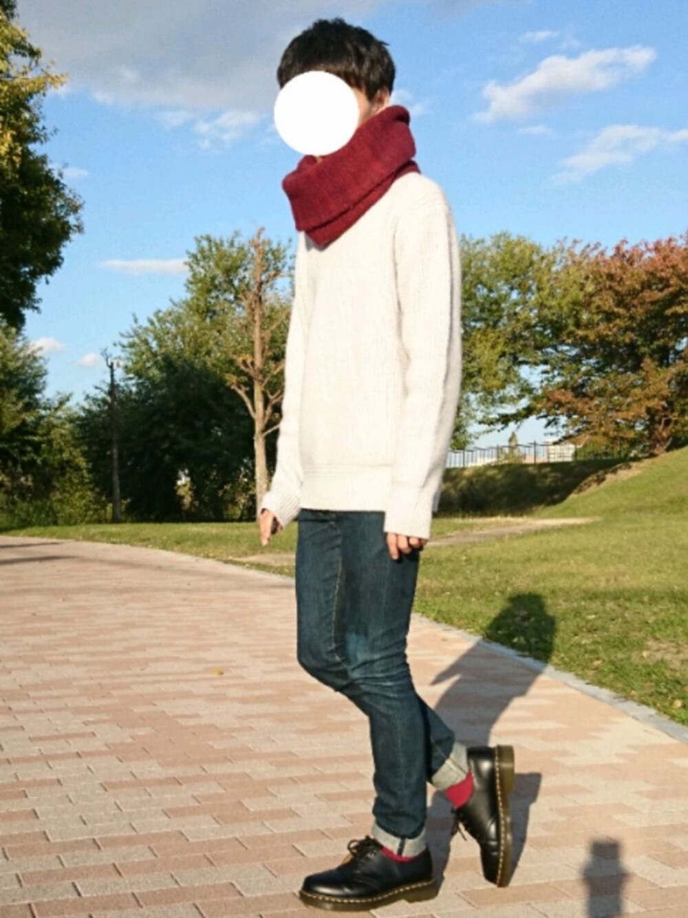 メンズメイク本格的に始めました👍 買ったコスメはインスタのほうで紹介してます😉 メイクについてもインスタで情報発信していくので良かったらフォローよろしくお願いします😂 インスタのリンクは僕のアカウントの概要欄にあります👍 夜寒くなってきたので、スヌードを解禁しました😄 アウターを着ないでスヌードをつけるコーデ、僕は好きです😉 あまりする人いないので、こなれ感や服好き感が出ると思うので、おすすめですよー🙃 ニットはライトグレーでHAREの18awの物です😀 zozousedでセールとポイントで1000円で買えました😂 zozoは買うタイミングなど上手にできると本当にお得に買えます😄 僕は去年同じニットの赤を買っていたので、サイズ感も知ってるので、試着してない不安もなく買えました😆 スヌードと靴下の色をワインレッドで統一して、統一感を出してます🙂 靴は革靴にしてキレイ目に寄せました😉 ではまた👍 size tops s bottoms s