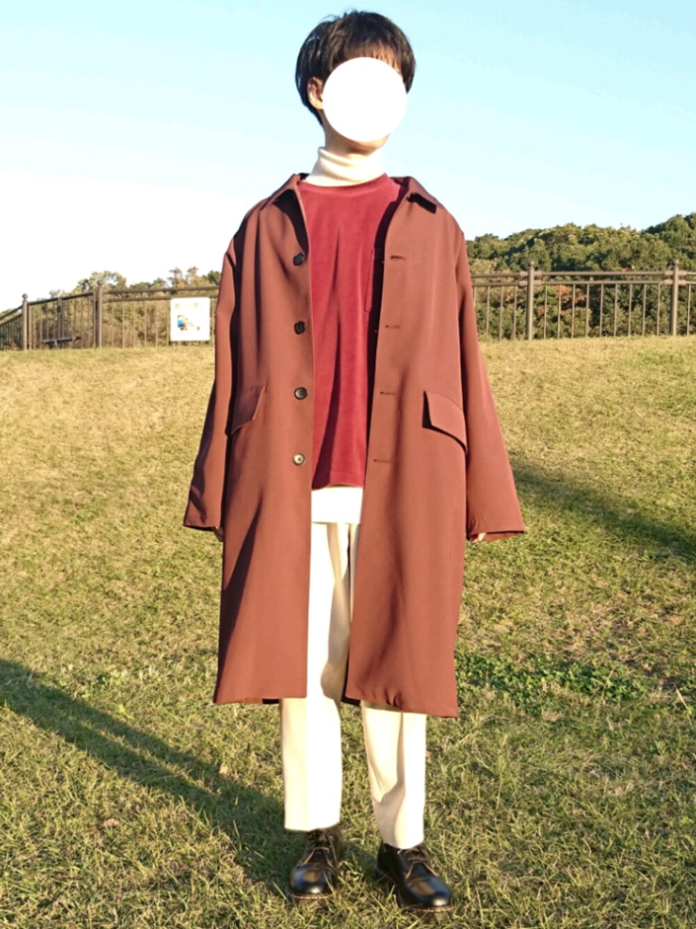 ゆーせーのステンカラーコート「BIGステンカラーコート(HARE)」を使ったコーディネート