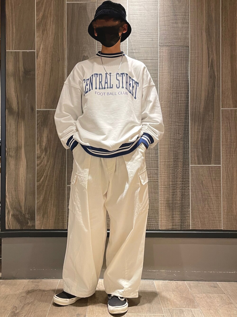スウェット×カーゴパンツでストリート系コーデです!! どちらもRAGEBLUEで買いました☺️ 白のカーゴパンツめちゃくちゃ履きやすいしかわいいです!