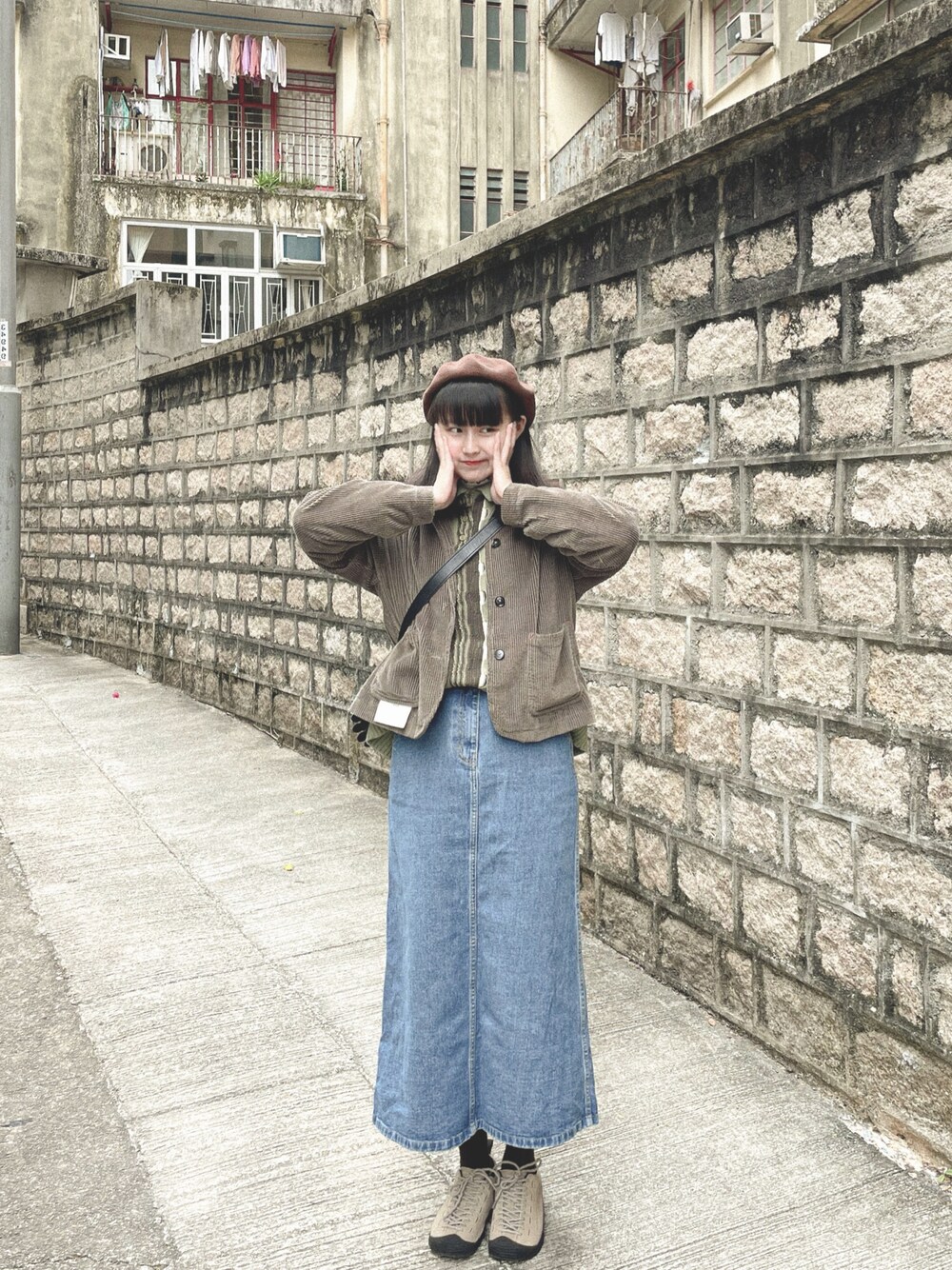ベージュ系のシューズ、ブラウン系のジャケット/アウターを着用したレディースの冬コーディネートの1枚目の写真