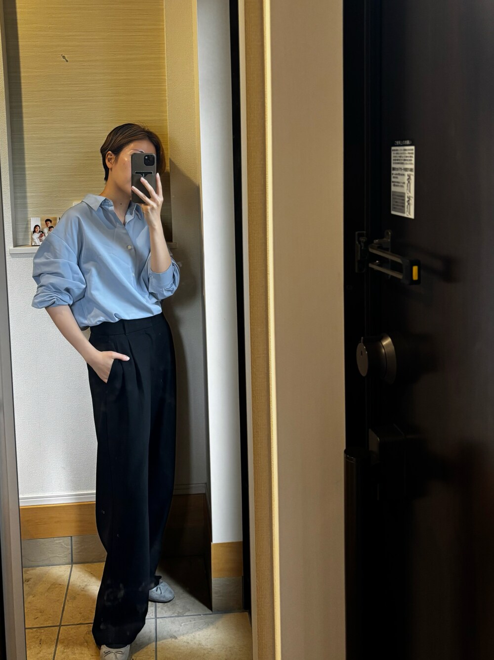 海外の方からインスパイアされて 家にある服で丸パクリコーデしてみた♡ パンツは少しルーズに着て、 ベルトをしない感じがすごい可愛くて 私もやってみた! 本当はミュール履いてたけど 私は持ってないので、今度買いたいな! 楽だし会社にも行けるし万能コーデ◎
