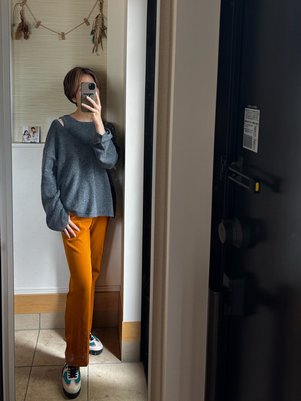 ブルベ冬秋の私に取って、オレンジは苦手色。 以前受けたパーソナルカラー診断士の方からは、 ブルベ冬の人はオレンジジュース飲むな! って言われたくらい🤣 (顔の目の前にオレンジが来るとくすむからw) だから、トップスにオレンジを持ってくることを避けてるんだけど、 ボトムスならオレンジ行けるな!と思って このオレンジのパンツはお気に入り🤍 グレー×オレンジはやっぱり可愛いな〜!! この日はまだ肌寒くてニット着てるけど、 夏に薄着でダークグレー×オレンジもやりたいな〜!