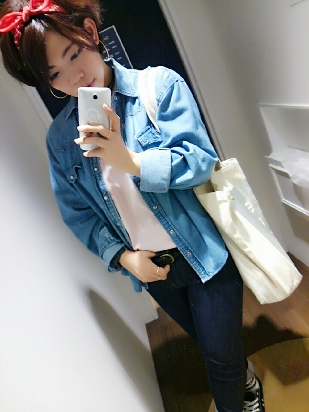 今日はデニムおんデニムの 気分だった~(* ̄∇ ̄)ノ シャツは古着屋で買いました❤