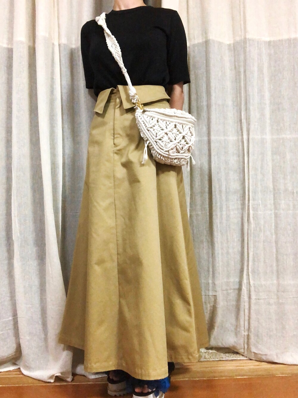 暑い時には避けていた トレンチのスカート ハイウエストなので足長効果です😹