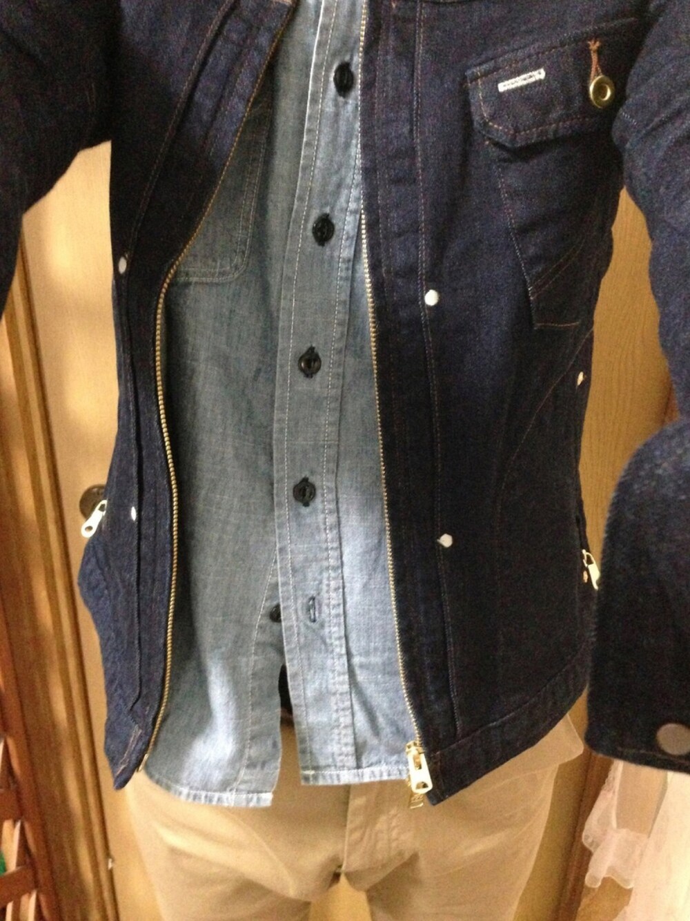 お気に入りのJohnbullのトラッカーJKの中にシャンブレーをイン♪ ボトムはALPHAに別注をかけたクライミングパンツ♪