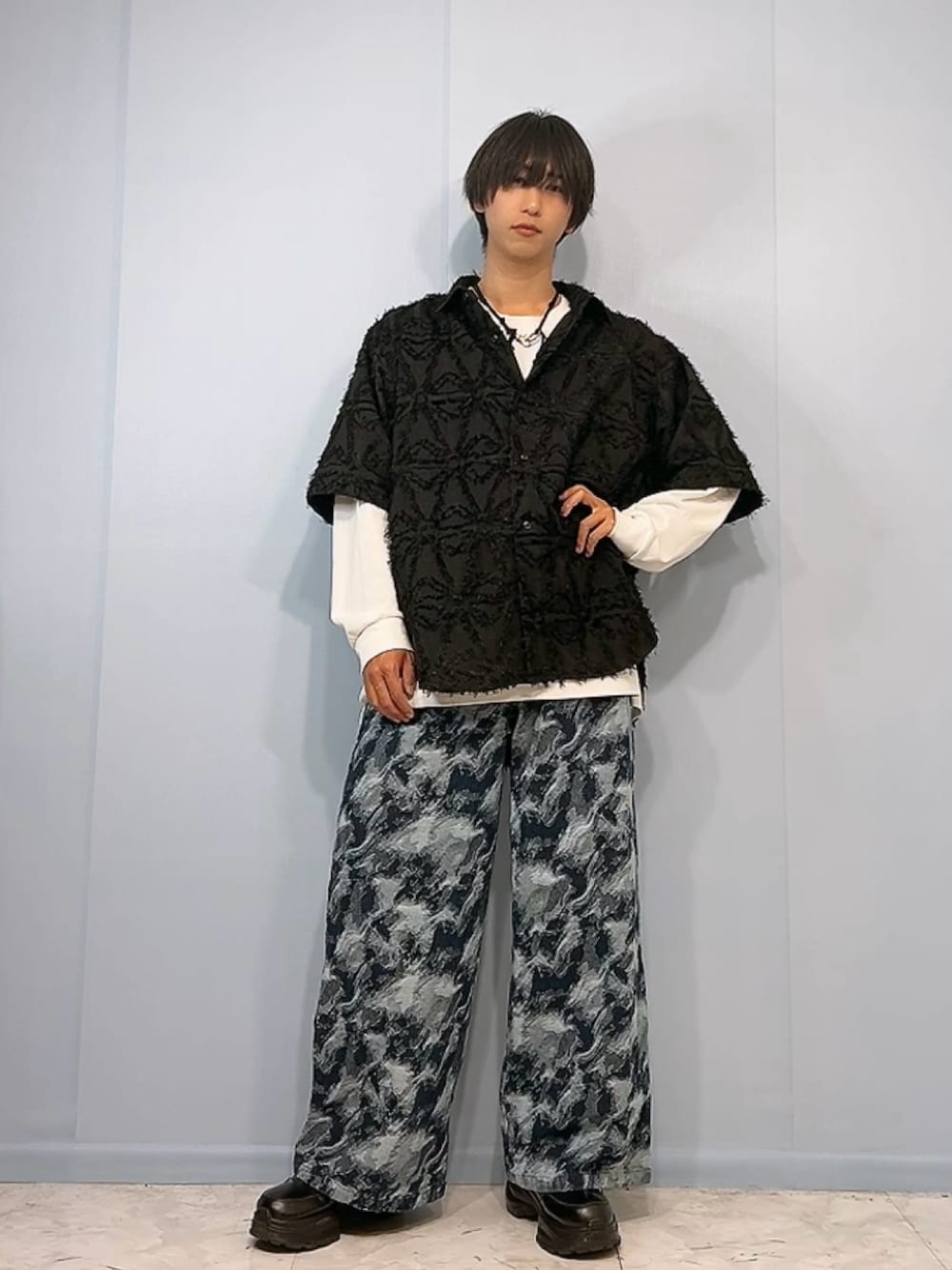パンツの柄とシャツの柄を合わせると普段のコーディネートとは違った味が出て可愛い