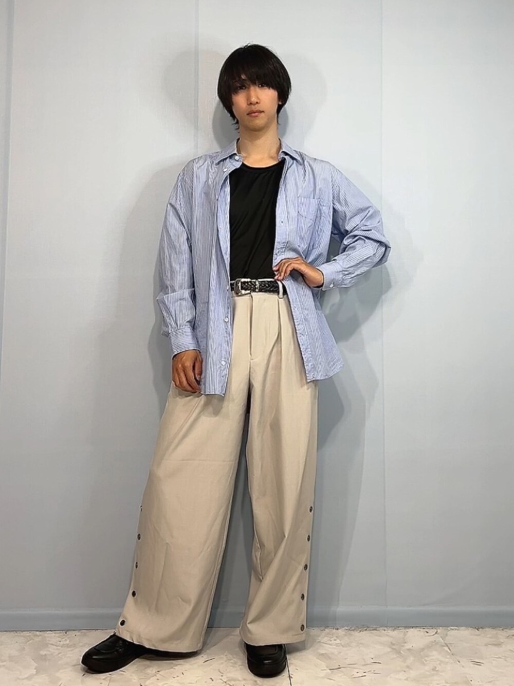 達矢のスラックス「【CLEL】Multi-silhouette loose side button pants/マルチシルエット ルーズサイドボタンパンツ」を使ったコーディネート