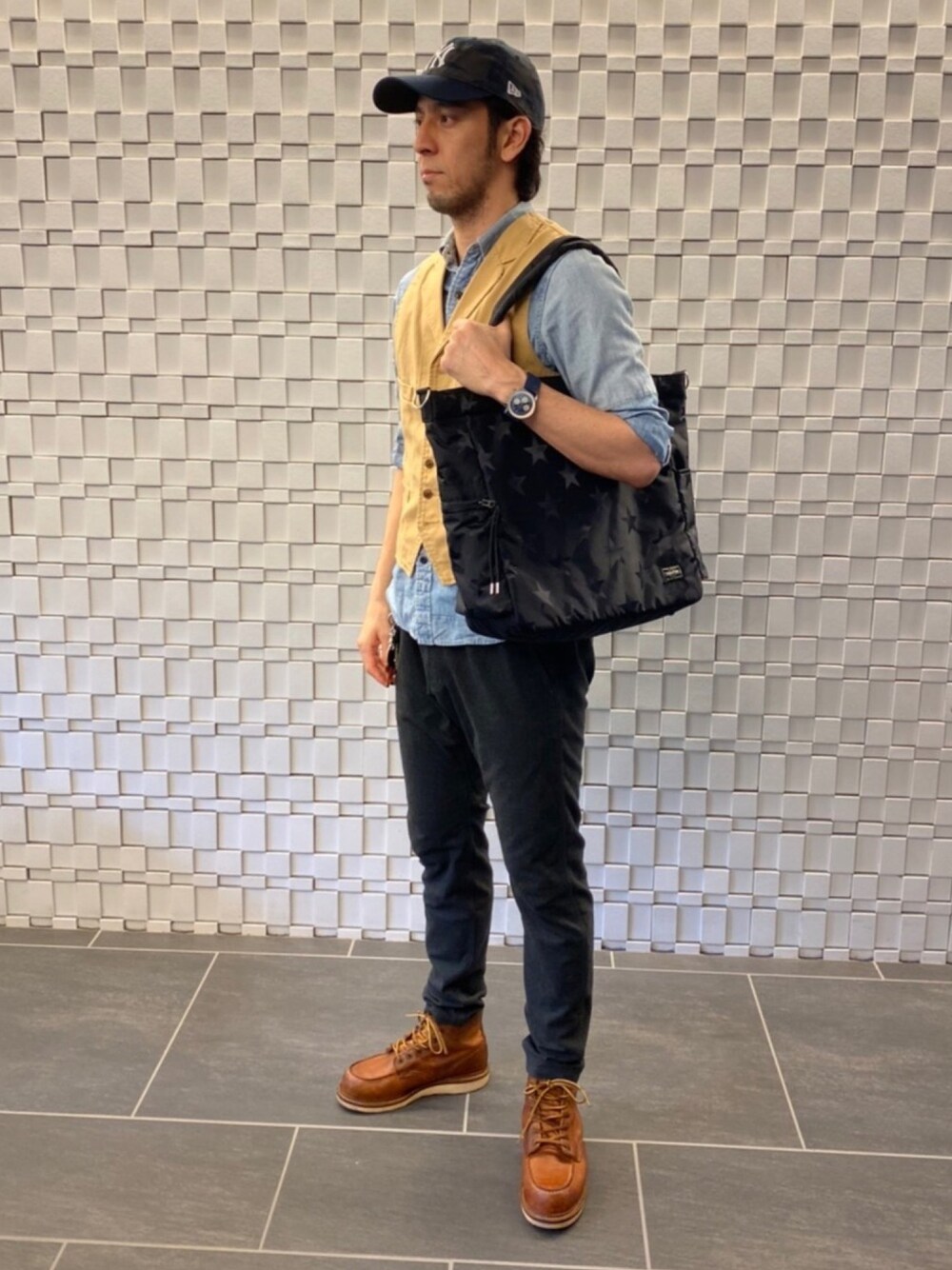 [アイテム] キャップ@newera ベスト@denim&supply ralphlauren デニムシャツ@denim&supply ralphlauren パンツ@cypress ブーツ@red wing バッグ@porter