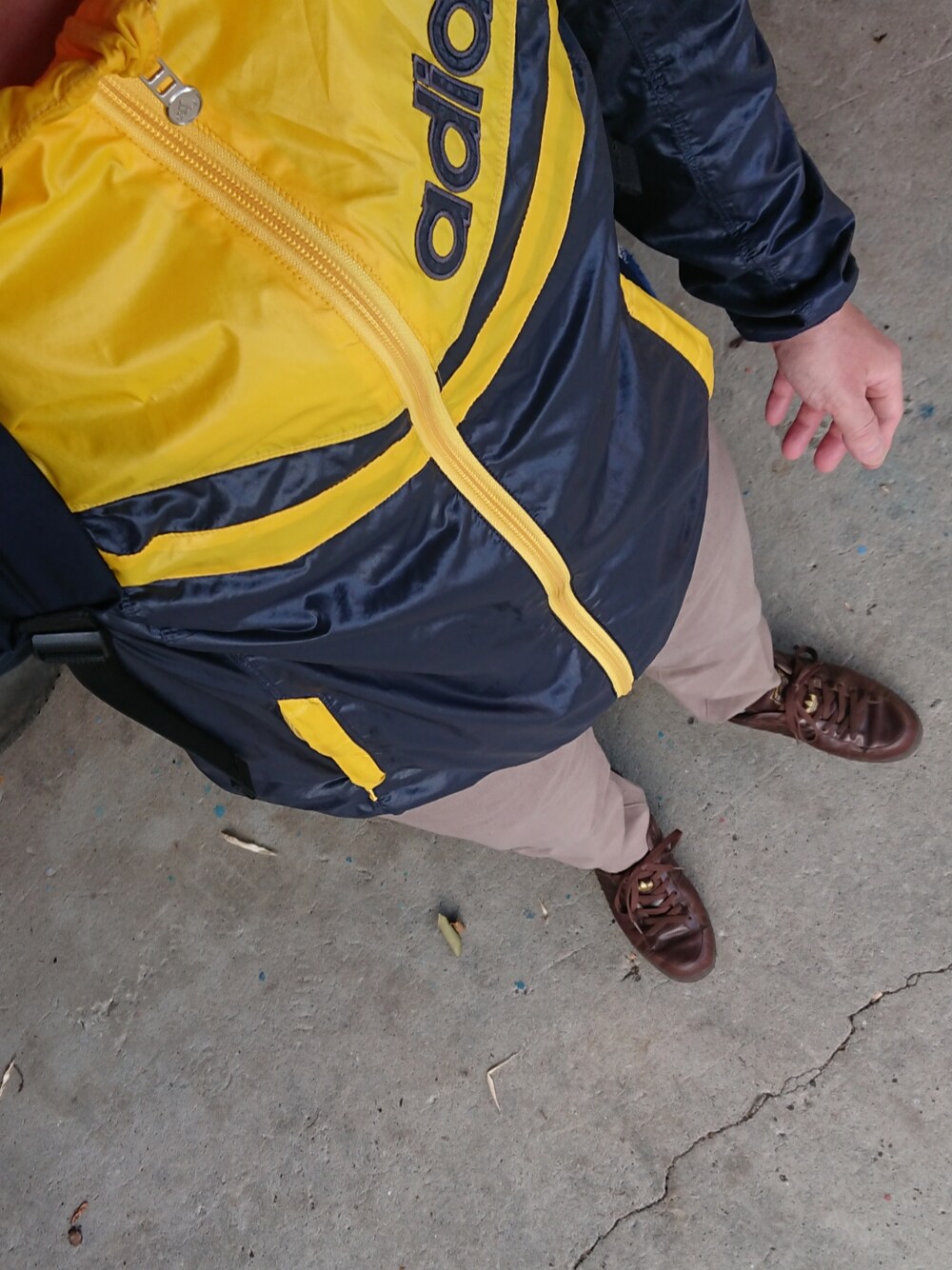 休日のコンビニコーデ♪ ナイロンパーカーは880円 スウェットぽいパンツは1500円 新入りですなぁ✨ いつも見てくれてありがとうございます。良い1日で終わりますように👍