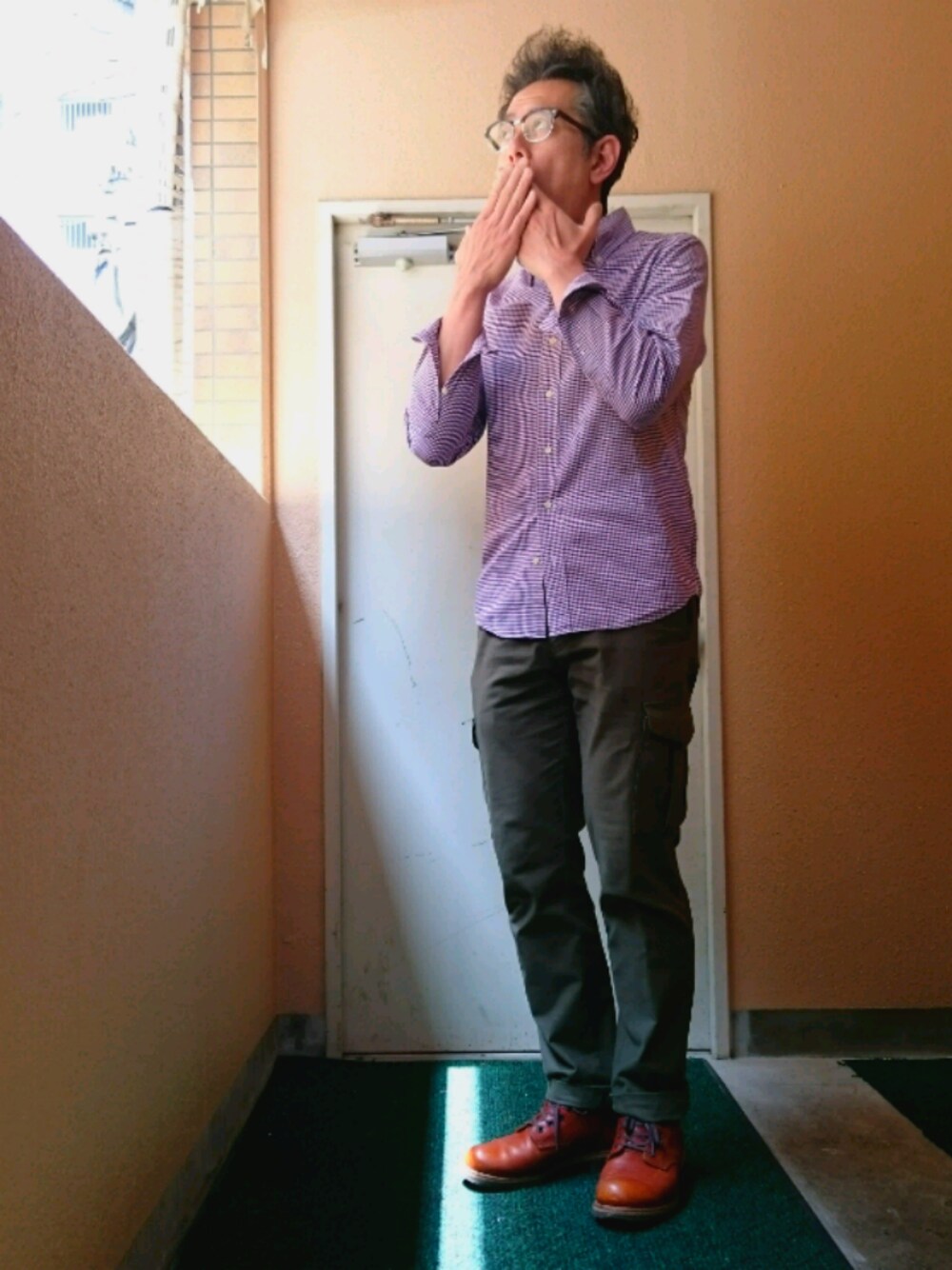 皆さん🎵こんにちは👋😃GWは楽しめてますか☺今日も声は出ません❗笑っ😂しかし通勤途中に黒猫にサイドを挟まれ前から黒アゲハが飛んでくる良い事ありそうなシチュエーションにそうぐっと🎵😆⤴⤴ コーデは紫のカジュアルドレスシャツとカーゴにブーツの休日コーデです❗的な🎵 休みではありませんが❗笑っ😂 良い1日になりますように🎵 いつも見てくれて有難うございます(^-^)仕事の励みになっておりますなぁ☺