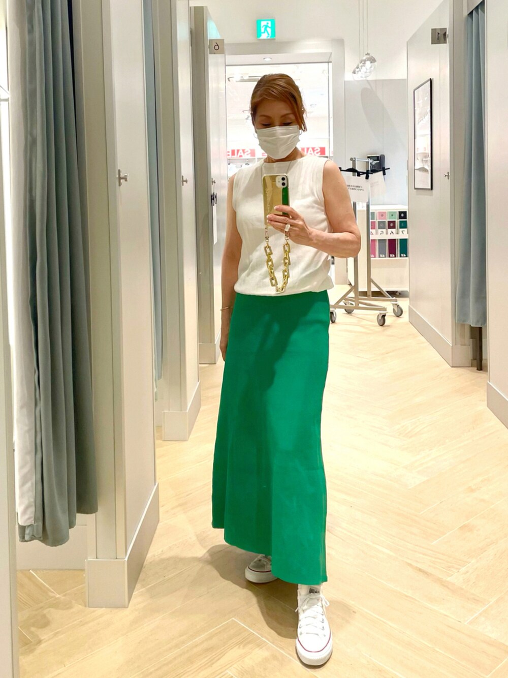 シルエットがキレイな Cocaさんのスカート💚 今季大流行りのグリーン💚