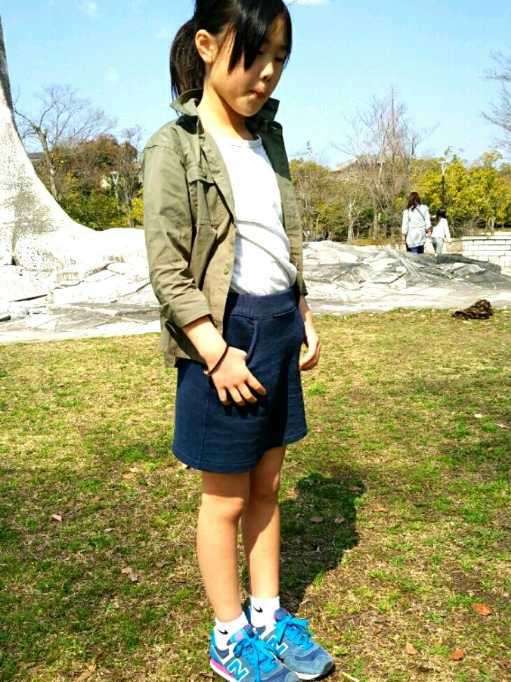 公園に来ました。あえてスウェットスカートにしました。