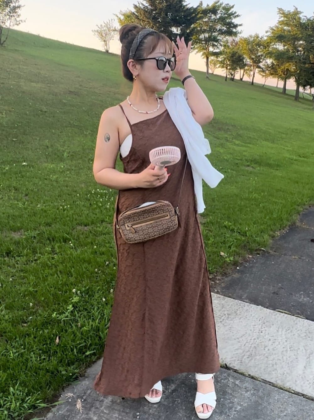 73(nanami)のワンピース「ぽこぽこカットジャガードキャミワンピース」を使ったコーディネート