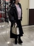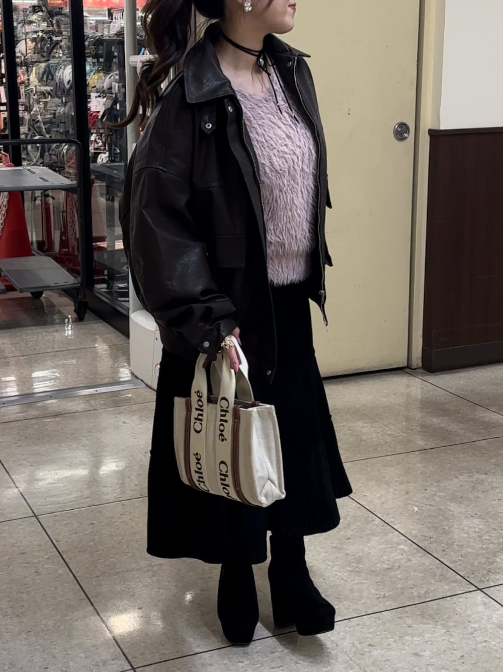 ピンクのもけもけニットと 毎度愛用しているレザーブルゾン合わせて 甘辛コーデをしてみた🫶🏻🫶🏻 どっちも モーメントプラス🐻🍪 レザーブルゾンめちゃくちゃ着回しきく🖖🏻♡