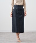 ミントグリーンが春を感じさせる、少し先取りスプリングスタイル。 【サイズ感】 ・ツイードドッキングジャケット カーディガン コンパクト丈。全体的に身体から離れたシルエットです。 釦を留めて着用しても余裕があります。コンパクト丈なので、開けて羽織ってもスッキリした印象です。 ・デニムライクセミタイト スカート ハイウエストがウエストを細見えにしてくれます。圧迫感はありません。 ピッタリし過ぎず足捌きが良いです。 【素材感・着心地】 ・ツイードドッキングジャケット カーディガン 布帛部分はフランス、MALHIA KENT(マリアケント)社のジャガードツイード。 グリーン系とピンク系の糸が立体的に編み込まれ、華やかで目を惹きます。 ニット部分は、糸にシルクの艶があり上質感のある素材です。 ・デニムライクセミタイト スカート 柔らかくストレスが効いて動きやすい生地です。 砕け過ぎた印象がなく、デニム苦手な人も取り入れやすく、キレイめカジュアルを楽しめます。 タイツやストッキングと合わせる時は、滑りが良くないので、ペチコートを入れるのをお勧めします。私はお店で着用する時、まだ寒いのでタイツ合わせしてますが、ペチコートを履くことでストレス無く過ごせてます。 後ろの釦は開けることができ、スリット幅を選べます。