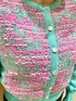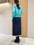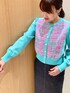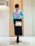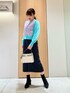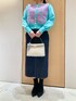 ミントグリーンが春を感じさせる、少し先取りスプリングスタイル。 【サイズ感】 ・ツイードドッキングジャケット カーディガン コンパクト丈。全体的に身体から離れたシルエットです。 釦を留めて着用しても余裕があります。コンパクト丈なので、開けて羽織ってもスッキリした印象です。 ・デニムライクセミタイト スカート ハイウエストがウエストを細見えにしてくれます。圧迫感はありません。 ピッタリし過ぎず足捌きが良いです。 【素材感・着心地】 ・ツイードドッキングジャケット カーディガン 布帛部分はフランス、MALHIA KENT(マリアケント)社のジャガードツイード。 グリーン系とピンク系の糸が立体的に編み込まれ、華やかで目を惹きます。 ニット部分は、糸にシルクの艶があり上質感のある素材です。 ・デニムライクセミタイト スカート 柔らかくストレスが効いて動きやすい生地です。 砕け過ぎた印象がなく、デニム苦手な人も取り入れやすく、キレイめカジュアルを楽しめます。 タイツやストッキングと合わせる時は、滑りが良くないので、ペチコートを入れるのをお勧めします。私はお店で着用する時、まだ寒いのでタイツ合わせしてますが、ペチコートを履くことでストレス無く過ごせてます。 後ろの釦は開けることができ、スリット幅を選べます。