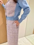 さり気なくきちんと感がある、大人可愛いセットアップスタイル。 【サイズ感】 ・フィルムラメツイードコンビ カーディガン コンパクト丈です。身頃やアームは余裕があります。 ・フィルムラメツイードセミタイト スカート セミタイトなのでヒップラインが気になりません。 長過ぎない丈感で、幅広いシーンで活躍しそうです。 【素材感・着心地】 ・フィルムラメツイードコンビ カーディガン フランス、Tournier(トゥルニエ)社の複雑な色と意匠系が入ったツイードを使用。 ニット部分はしっかり目の素材です。 デニムに合わせてカジュアルスタイルもお勧めです。 ・フィルムラメツイードセミタイト スカート フランス、Tournier(トゥルニエ)社の複雑な色と意匠系が入ったツイードを使用。キラキラの糸が角度で光り、華やかな印象です。暖色系と寒色系の糸を使っているので、カラー合わせもしやすいです。 柔らかく履き心地の良いスカートです。 オケージョンからデイリーまで楽しめます。