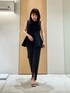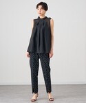 軽くて涼しい夏のセットアップ。 【サイズ感】 ・サッカーストレッチペプラム ブラウス ふんわりシルエット。ヒップ被さる丈感です。袖ぐりは苦しくありません。 ・サッカーストレッチスリットパンツ 後ろウエストゴム。身体に付かず離れずでスッキリ見えします。 前ファスナーで着脱も簡単です。 【素材感・着心地】 ・サッカーストレッチペプラム ブラウス サッカー素材で、とても軽く涼しい着用感です。ストレッチも効いて着心地抜群です。 ・サッカーストレッチスリットパンツ ブラウス同様サラサラとして、ストレッチの効いた履き心地抜群のパンツです。 裾の前スリットが、脚首を綺麗に見せてくれて、脚全体をスッキリ見せてくれます。