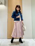 秋のカジュアルスタイル。 【サイズ感】 ・ストレッチデニムペプラム ジャケット コンパクト丈でスッキリと綺麗見えします。アームは余裕があり、セーターなど厚めのインナーも大丈夫です。 ・ドットカットワークショート プルオーバー ざっくりと余裕があり大きめです。コンパクト目が好きな人は、いつものワンサイズ下が良さそうです。 ・レザーライクサテンプリーツ スカート ウエストゴムはしっかり目ゴムです。プリーツは広がり過ぎず落ち感があります。 【素材感・着心地】 ・ストレッチデニムペプラム ジャケットストレッチが効いて動きやすいです。 ペプラムが可愛らしく、カジュアルが苦手でGジャンを着たことがない人も取り入れやすいかもです。 ・ドットカットワークショート プルオーバー 糸に艶があり綺麗な表面です。ストレッチが効いて肌触りも良いです。 袖口のカットワークもオシャレで、ふんわり袖もそのままのフォルムです。 ・レザーライクサテンプリーツ スカート レザー見えのポリエステル素材です。シワをあまり気にせず着用できます。 シンプルなデザインなので、あまりトップスを選びません。カラー違いで揃えてコーディネートを楽しむのもおすすめです。