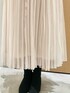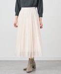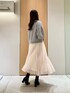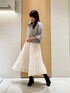 一枚で可愛いフリンジニットとシアースカートで、秋のオフスタイル。 【サイズ感】 ・プチビジューフリンジ プルオーバー 通常ANAYIのサイズ感よ大きめです。全体的に余裕があります。 ・カルゼオーガンジープリーツ スカート ウエストゴムは硬過ぎないゴムです。よこファスナーで着脱です。 プリーツは広がりは抑えられでいますが、お腹周りが気になる人はアウトスタイルが良さそうです。 【素材感・着心地】 ・プチビジューフリンジ プルオーバー ふわふわフリンジが可愛らしく、存在感あるニットです。よく見ると小さなビジューが付いていてキラキラ可愛いです。 見た目ほど厚手ではなく、長いシーズン着用できます。軽い着心地です。 ・カルゼオーガンジープリーツ スカート とても軽くシアー感が美しいスカートです。 異素材との相性がよく、ブラウスやニットは勿論、ツィードジャケットなど合わせて、華やかなシーンにもおすすめです。