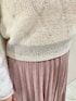 【サイズ感】 ・フェザージャガードビジュー プルオーバー コンパクト丈。パンツ合わせはハイウェストがおすすです。 ・フェイクスエードプリーツスカート ウエストゴムは柔らかくストレスなく着用できます。お腹周りのプリーツも広がりすぎず、綺麗な落ち感があります。 【素材感・着心地】 ・フェザージャガードビジュー プルオーバー ウールが入っていないのにとても暖かく、肌触り良く伸びの効いた素材です。ラメとビジューのキラキラも可愛いです。 ・フェイクスエードプリーツスカート 柔らかく軽い着用感。異素材合わせがしやすく、ジャケットやブラウスできちんとスタイルにも、ざっくりニットにスニーカー合わせでカジュアルスタイルも可愛いです。幅広いシーンに活躍します。