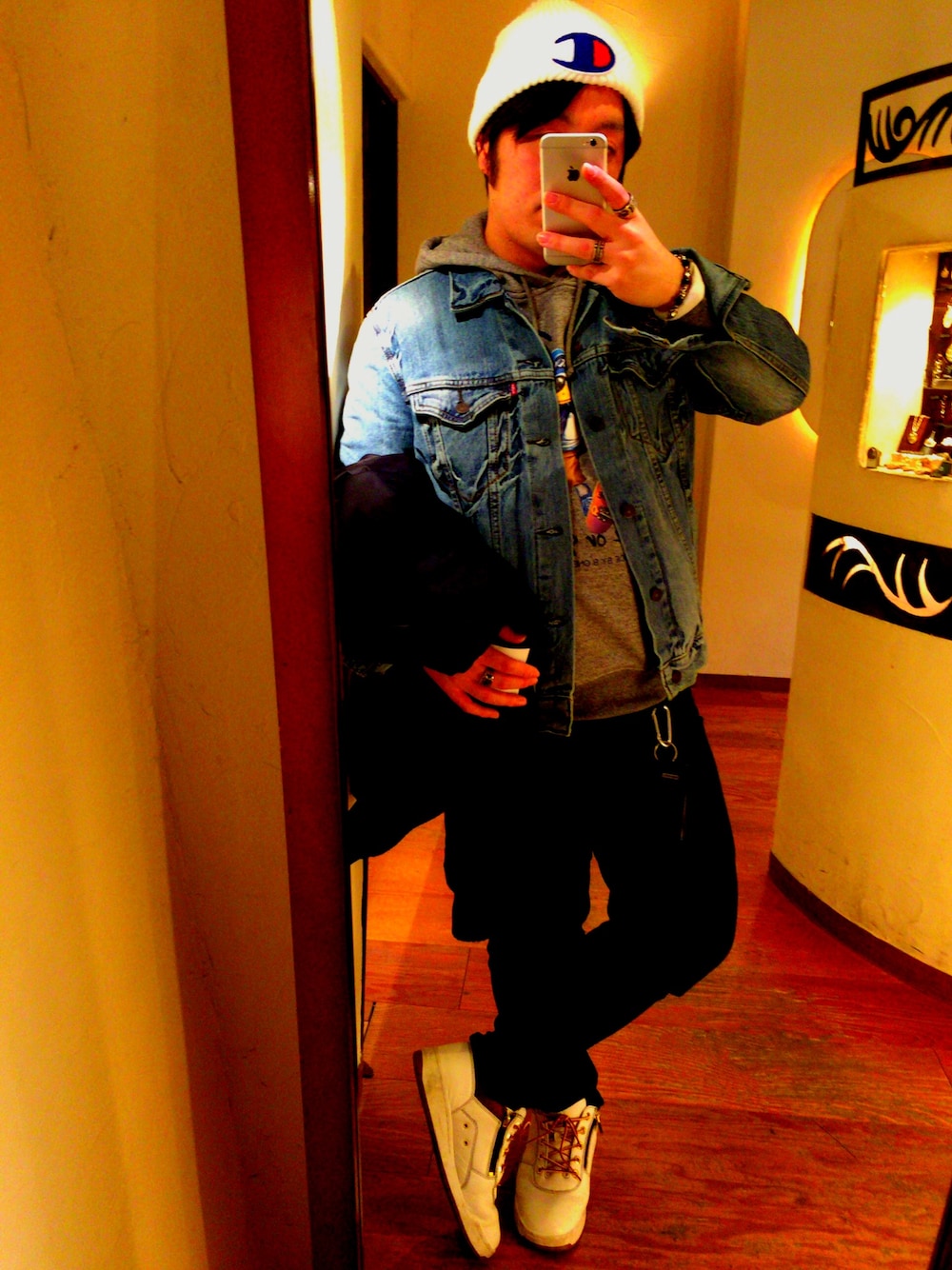 takuのニットキャップ/ビーニー「【Champion】デカロゴワッチキャップ」を使ったコーディネート