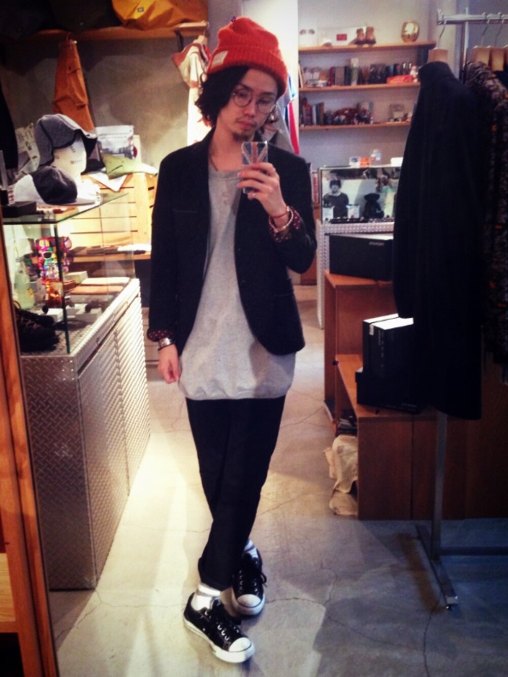 ジャケット…Quesorvel カットソー…GOODWEAR パンツ…SUPER FINE シューズ…converse カットソーはただのXL…笑 今日は黒いですね〜 シンプル 楽チンコーデ。いえす。