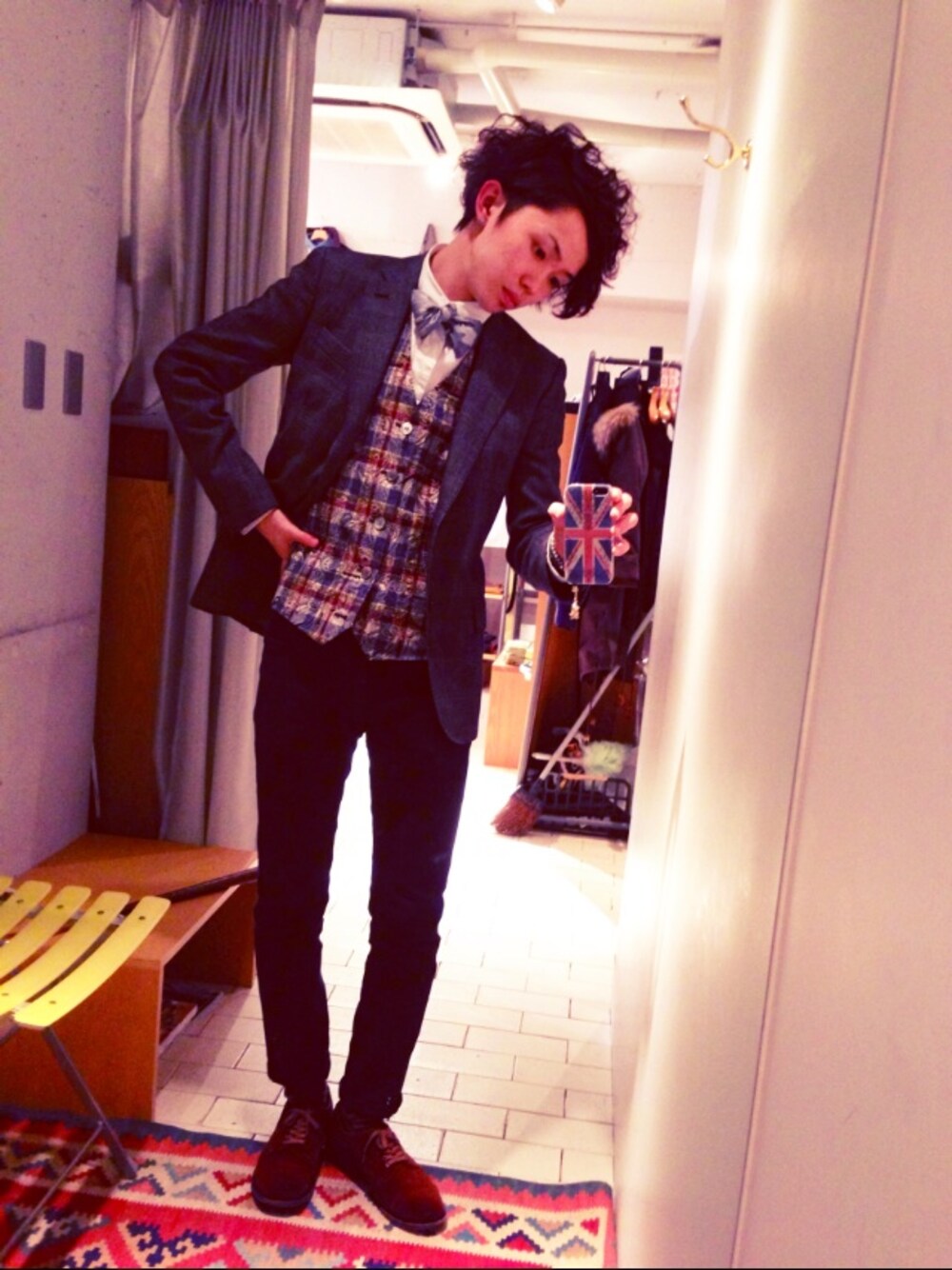 ロイヤルヘム ジャケット 蝶ネクタイはスカーフで蝶ネクタイ風にしてるだけです。笑 遊び心…笑