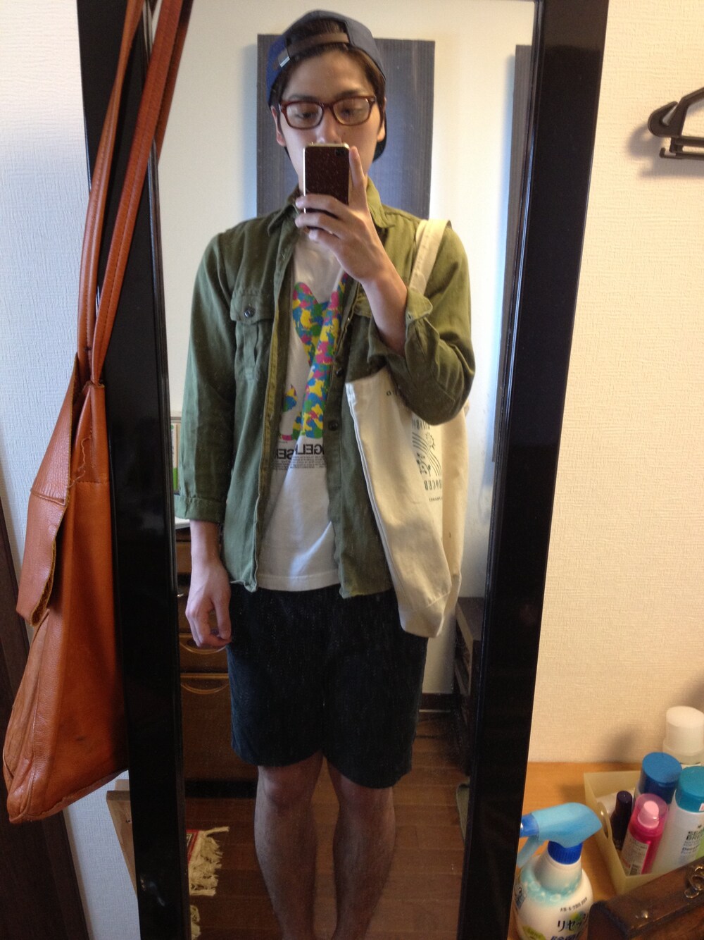 ミリタリーシャツ(USED)とリーバイスのショーパン(USED)にエベッツフィールドのキャップを合わせました。