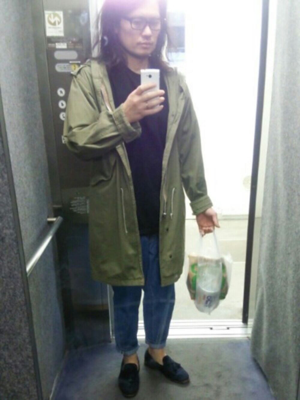 おはようございます。 朝マック買いにいった帰りです。 薄手のモッズコートに、WEARISTAのまさあきさんもはいていたフリークスストアのバルーンデニムにしました。