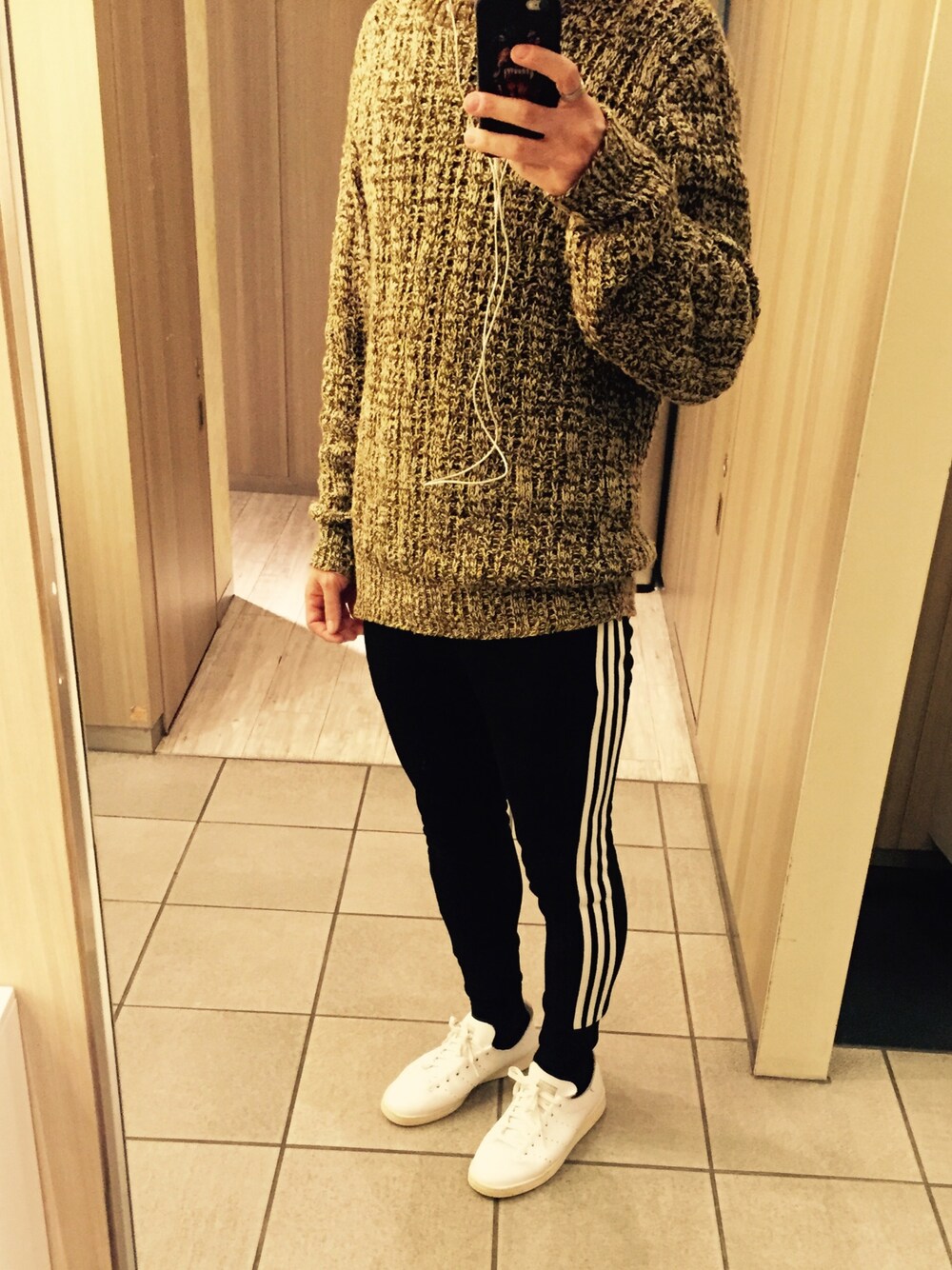 こんばんわ✨ 先日のオフコーデです。 NIKEユーザーですが、このadidasのコンビはお気に入りです😊💯 上は黒のタートルにニットで防寒🙆 とりあえず風邪治します‼︎