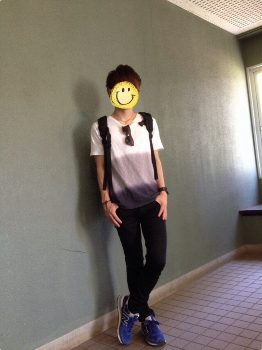 カットソー:チャオパニック デニムパンツ:And A スニーカー:ニューバランス574 ブレスレット:HARE サングラス:green label relaxing 今日は上から下までネイビーのグラデーションコーデしてみました。 見にくいけどパンツも濃紺です。 夏はいつも以上にシンプルになりがちなのでアクセサリーでせめてもの足掻きしてます。笑 丸めがねっていうかサングラス。。無理矢理でごめんなさい。笑