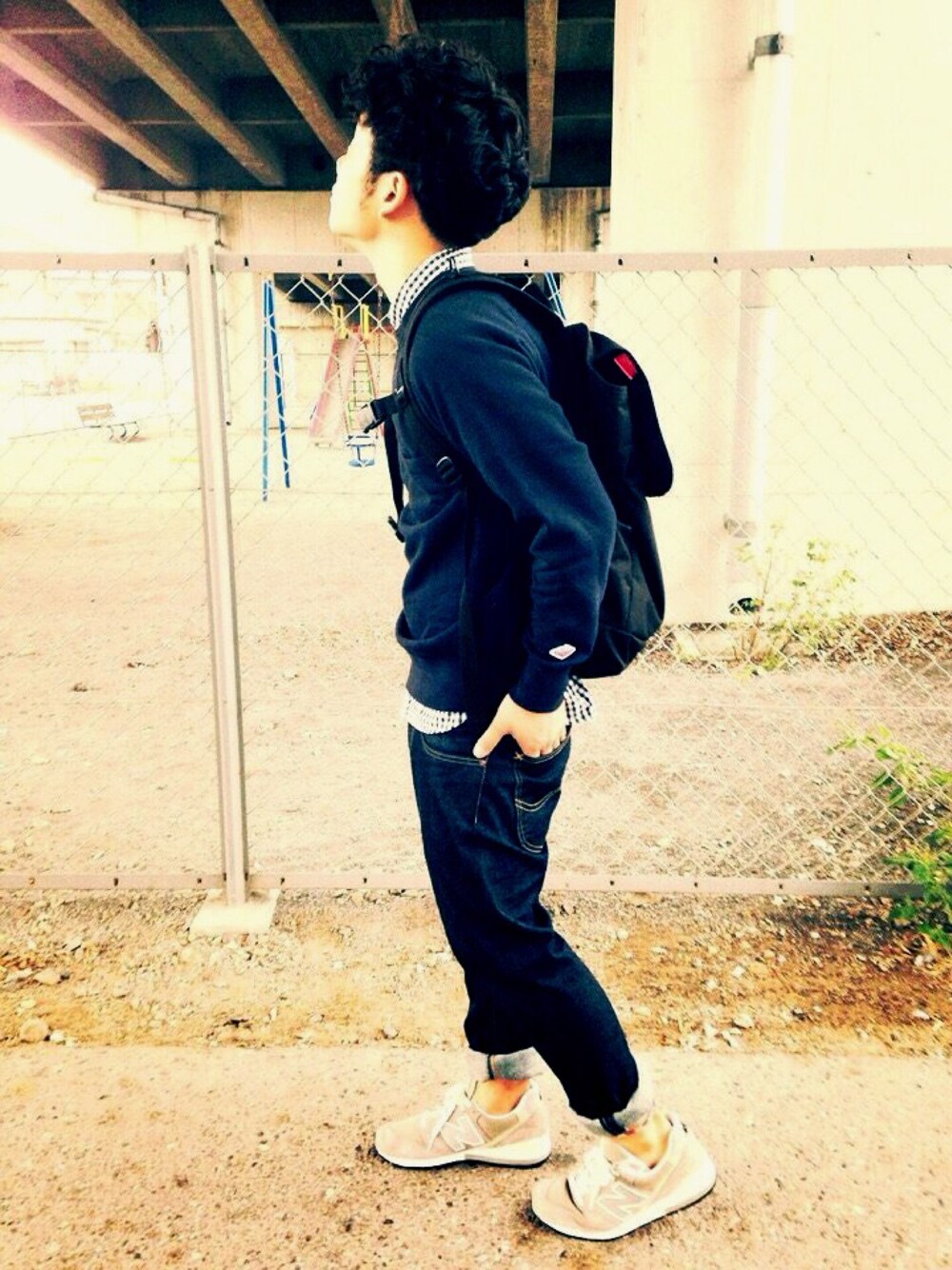 スウェット/Batten wear シャツ/無印 デニム/Lee シューズ/New Blance