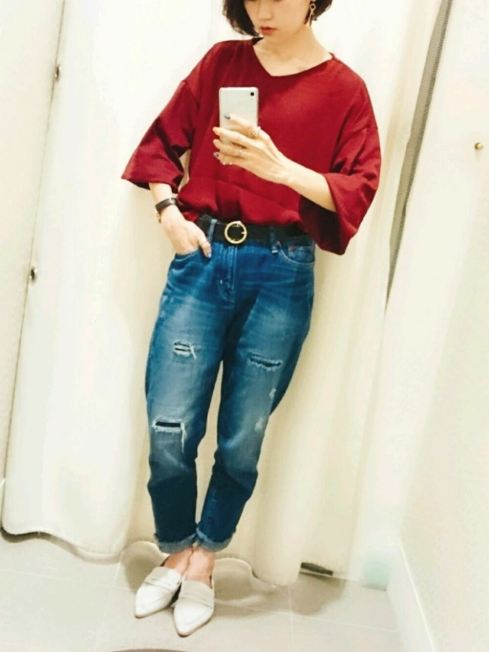大人気!!新作のブラウソー✨ earthでは珍しいダメージデニムと合わせて カッコキレイめに!!