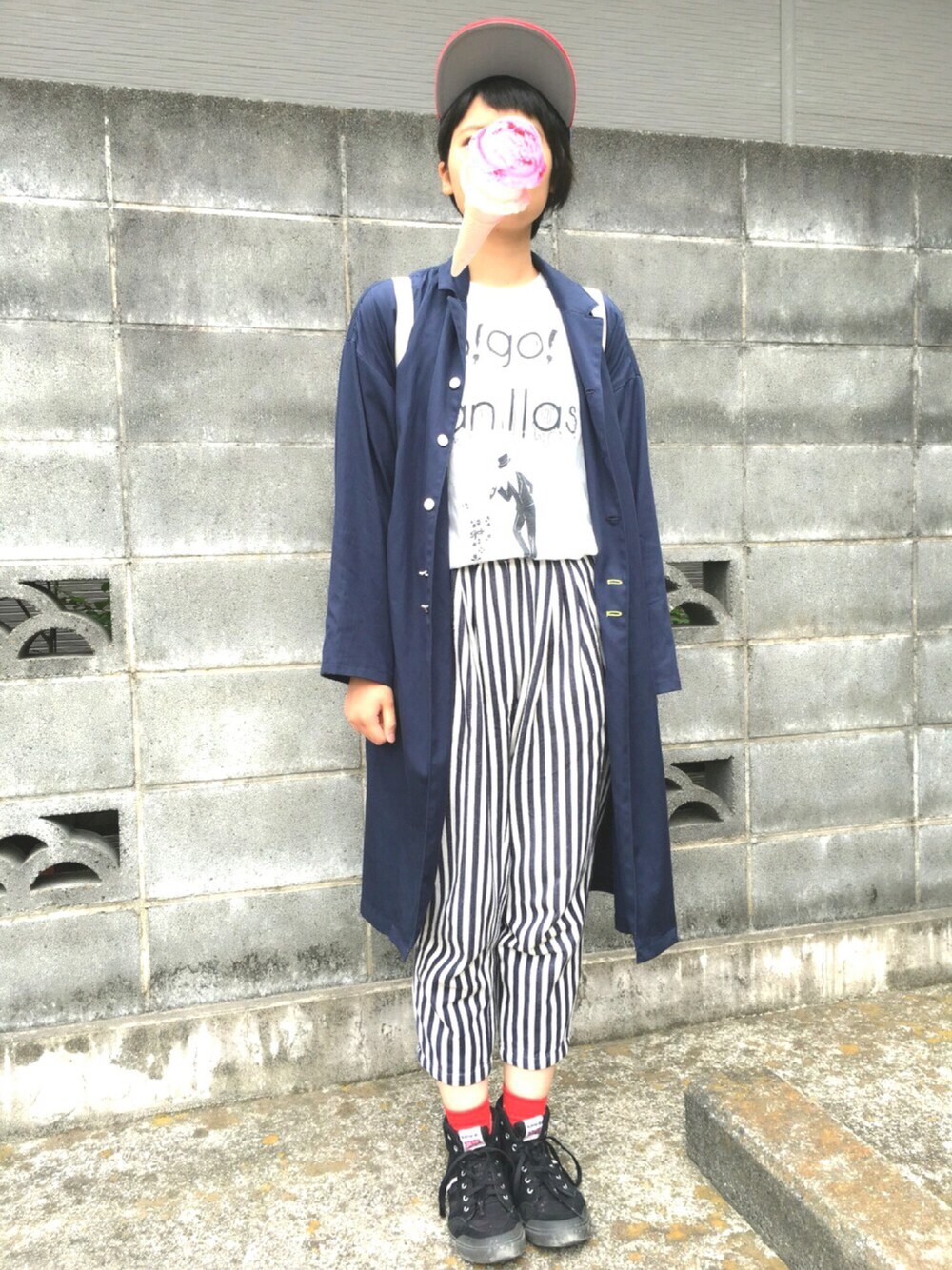 まだ夏ではなかったみたい。 もくもくくもり。少し肌寒かった本日。 はい。余韻がたまらなくて、眠れないので。(笑) こんな夜遅くに更新します。こんばんは。 今日のテーマは「バニラズ少年」 あれ?ジブリ女子宣言したばかりなのに、少年に。(笑) やっぱり、この髪の短さだと少年になっちゃいます。(笑) はい。ネイビーに溢れ、しましまパンツはギターの柳沢氏をイメージ。 足元は、バニラズの兄貴たちBAWDIESをイメージ。 (´-`).。oO(まあ、ROYさんかな? で、向かうは go!go!vanillas Kameleon Lights Tour 2016 ファイナル!新木場 STUDIO COAST!! はい。最高でした。最高に幸せでした。 一瞬にして笑顔にしてしまう。 そんな彼らの音楽が大好きです。 バニラズマジック。 バニラズに出会えて本当に良かった。幸せ。 帰りに、チェコノーリパブリックの武井さんとマイちゃんに会えて、びっくり! 話せて握手もして、大興奮でした! おふたりとも凄くフレンドリーに話してくれて、嬉しすぎました!かわいかった、、、。 すごく贅沢な日。 たまらないたまらない。 BAWDIES×バニラズの対バンツアーも決まり 愛してやまない2組のコラボに にやにやがとまらない私でした。 ちなみにBAWDIESも来てました◎ あ、なんかハイテンションだから、まとまらない。 ちゃんちゃん。(笑)