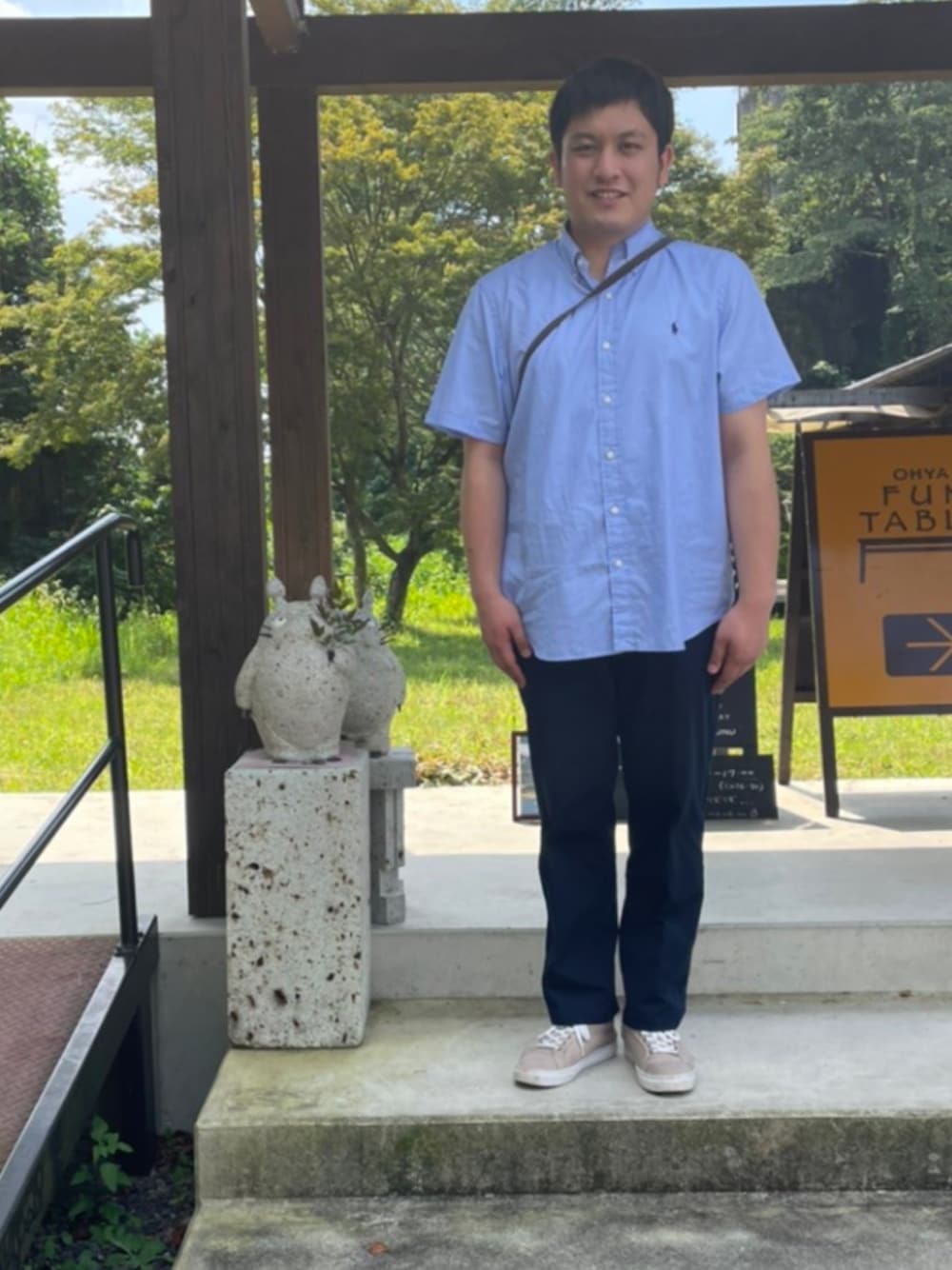 爽やかな青色を着こなしてみました!😊 とても着心地が良い青色のシャツです👔 ベージュのスニーカーを合わせて、足元はスッキリと😊 青色の濃淡の差で色味を楽しみました! 暑い日は続きますが、気持ちは爽やかに生活をしていきたい😌