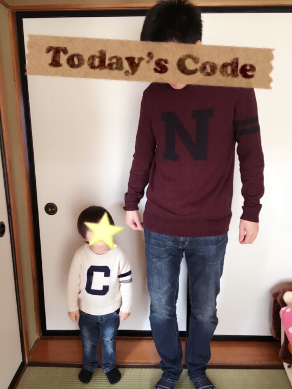 昨日の親子code…♪ 昨日はパパがお休みだったので、 アルファベットのニット×デニムパンツで合わせてみました〜。 今年はあまりXmasらしいこと出来なかったぁ。