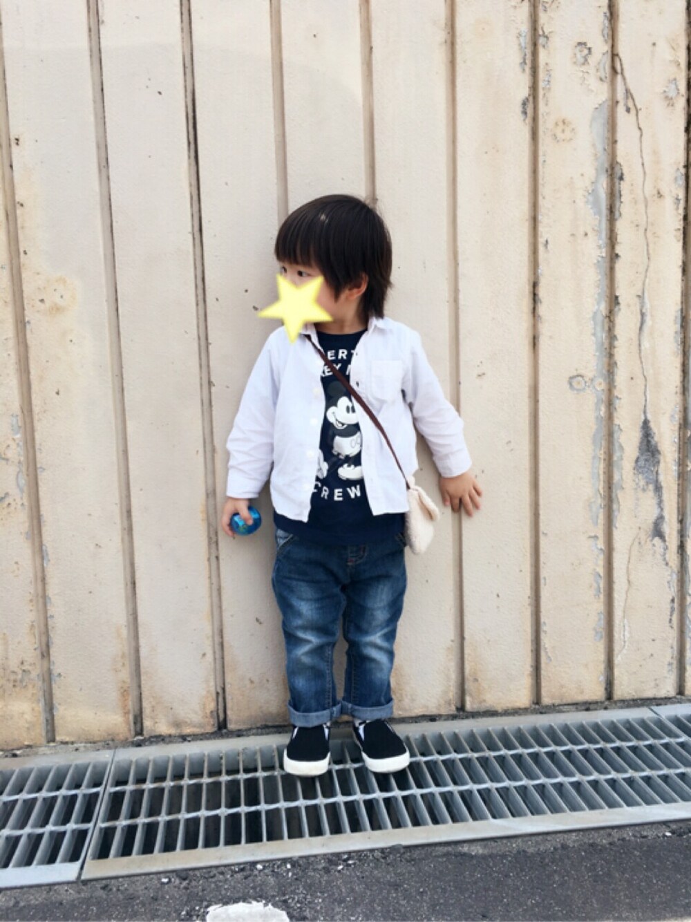 白シャツ×ミッキーTこーで。 このコーデには合わないくまさんのポシェット。 写真撮るときは外したかったけど、 お出かけには今のお気に入りを絶対持っていかなきゃいけない息子くん。 離してくれませんでした。 くまさんポシェットが似合うコーデにすれば良かったね。 でも、出かける直前まで、息子が今日は何を持って行くのか母にはわからず。 こだわりが強い子です。 子供って、こういうもんなのかなー?