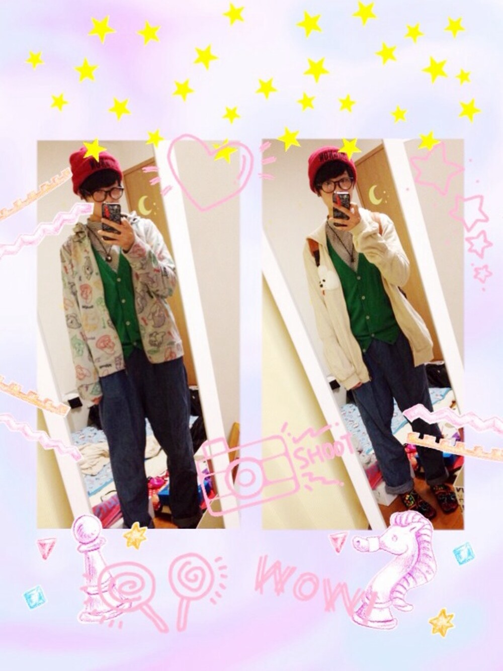 だぼっとこーで 左は七人の小人パーカー 右はわんこパーカー