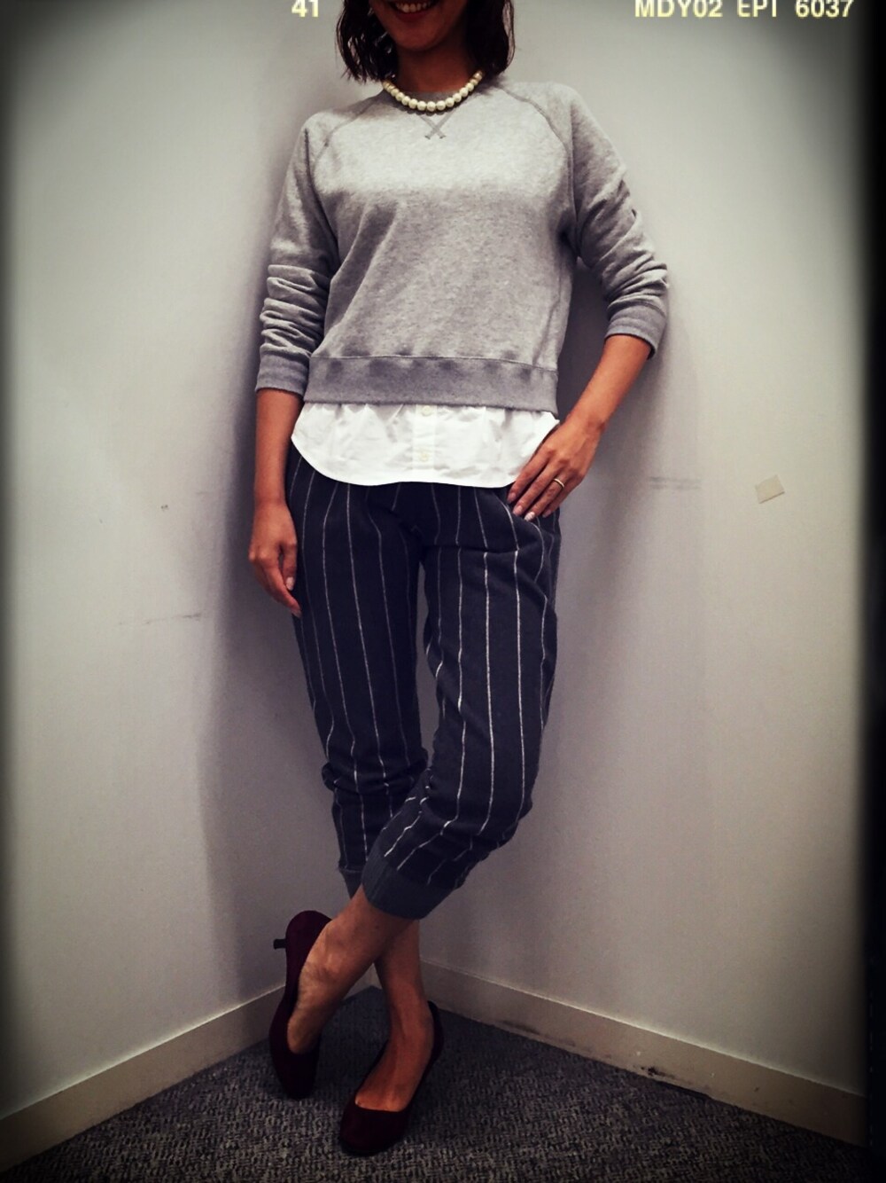 ストライプスウェットパンツ買いました(^-^) すっかり、秋モード。 髪の毛スッキリ上げた方が良かったなぁ。