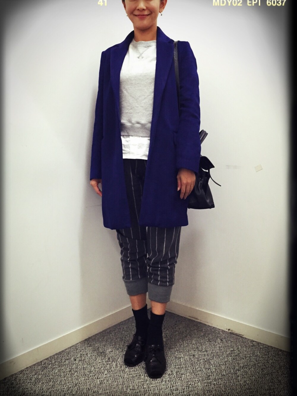 急に寒くなったので、コート&靴下投入!アクセサリーは、シンプルなシルバーピアスのみ。