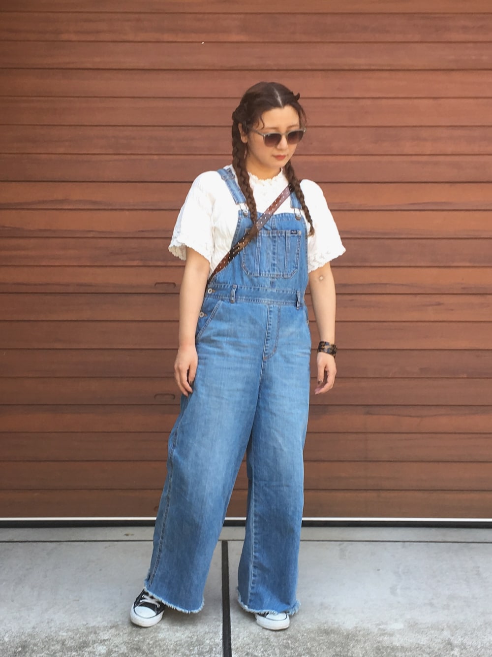 夏はレースブラウスとオーバーオールを合わせたくなる♡ このブラウス後ろが華奢なリボン🎗
