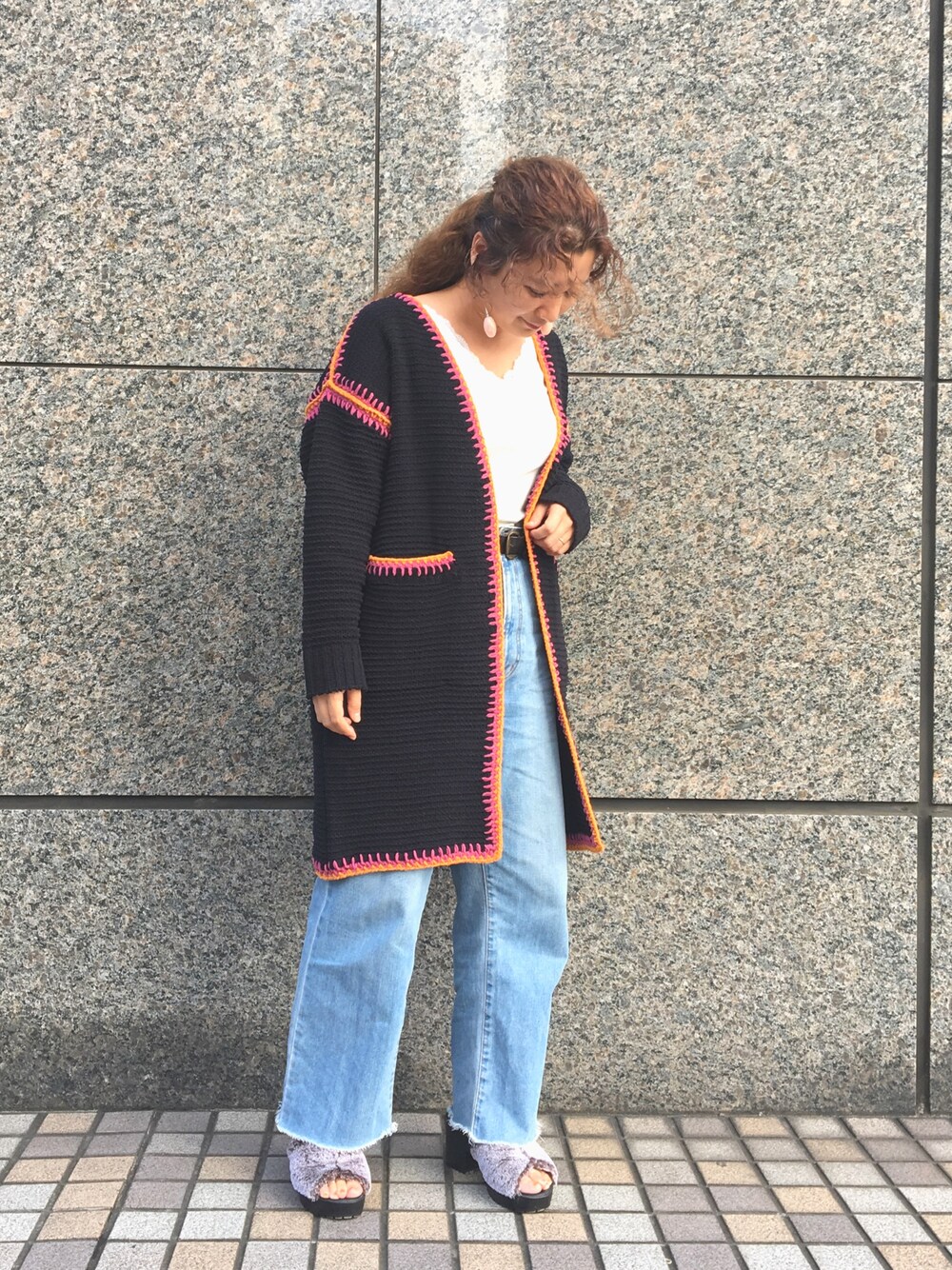 ボヘミアンなパイピング配色が可愛いざっくりカーデを主役に🐻 気分はカントリーガールです🌿
