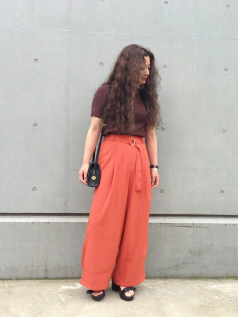 ブラウン × テラコッタ 👳🍊 この秋色が今の気分~ ワイドパンツ 楽チン🙌🌵