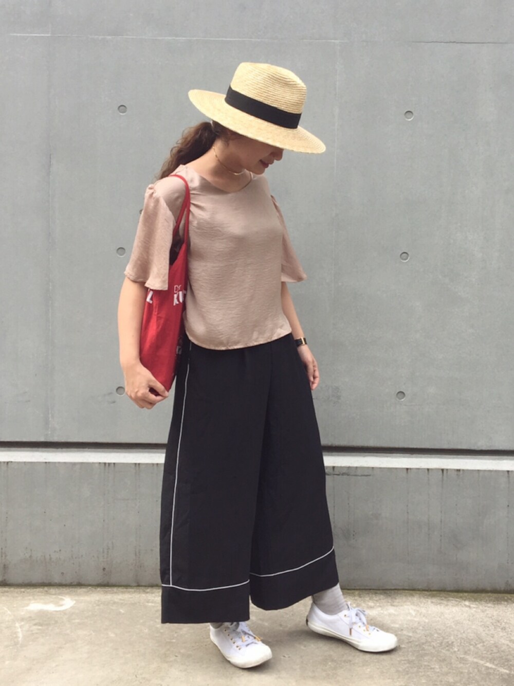 パジャマパンツにサテンベージュのブラウスでゆるスタイルー🐸❣️