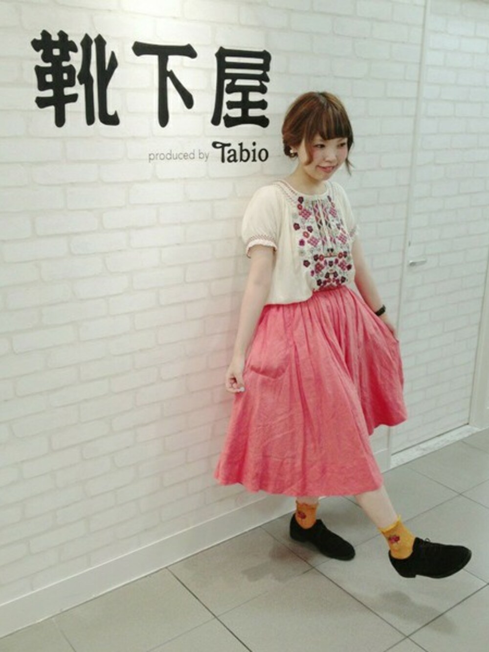トップスのお花柄と靴下を合わせました。 絶妙な透け感のため、ベースの色味が綺麗に乗ります。