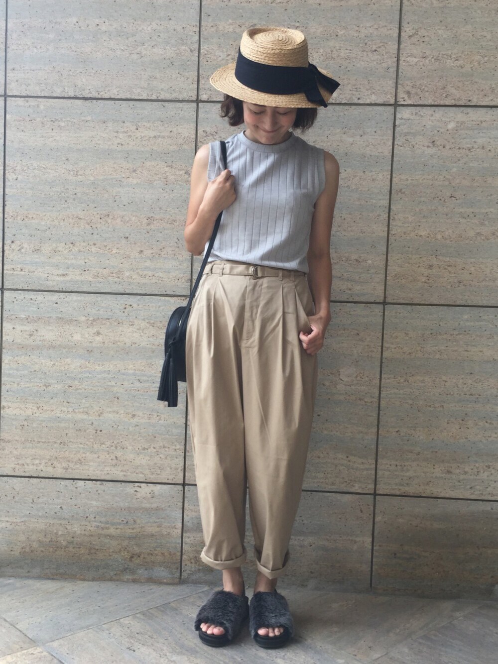 TESCOのハット「ラフィアカンカン」を使ったコーディネート